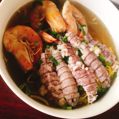 มาตราดต้องกินก๋วยเตี๋ยวกั้ง...พอดีกลับจากหาดเล็ก เจอร้านโดยบังเอิญหิวพอดี คนทานแยะพอดู รสชาติจืดไปคะ ธรรมดาๆ ทานได้คะ แต่เครื่องทะเลแน่นชามคะ จานละ100฿ดูเพิ่มเติม