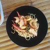 ร้านอยู่ฝั่งขาเข้ากรุงเทพ ต้องสังเกตป้ายเอาหน่อย (ตำแหน่งใน Google map ถูกต้อง) มีที่นั่งทั้งในร้านเอง ห้องด้านข้าง และเป็นซุ้มไม้ไผ่ด้านหน้า เมนูหลากหลายมาก รสชาติโดยรวมแล้ว จัดจ้่นมาก ยำอร่อย กุ้งและหมึกสดดี รสชาติแซ่บ สปาเกตตี้ขี้เมาจัดจ้่นมาก กุ้งดีืดูเพิ่มเติม