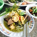 ร้านขนมจีนอีกหนึ่งร้าน ที่ได้มาลองชิม #ที่นี่แม่ค้าใจดี จัดเส้นขนมจีนใส่จานแล้ว ส่วนน้ำแกงให้ลูกค้าตักราดเองนักเลงพอ :) มีน้ำยากะทิ ไตปลา แกงเขียวหวานไก่ และไข่ต้ม รสชาติ อร่อยปานกลาง เติมพริกเพิ่มความเผ็ดซักหน่อย ส่วนร้านข้างๆมีไก่ทอดขาย ซื้อมากินเพลินๆ แม่ค้าอารมณ์ดีมากๆ ราคาทั่วไป แวะเวียนมาชิมดูนะคะ. *ร้านหยุดทุกวันจันทร์ดูเพิ่มเติม