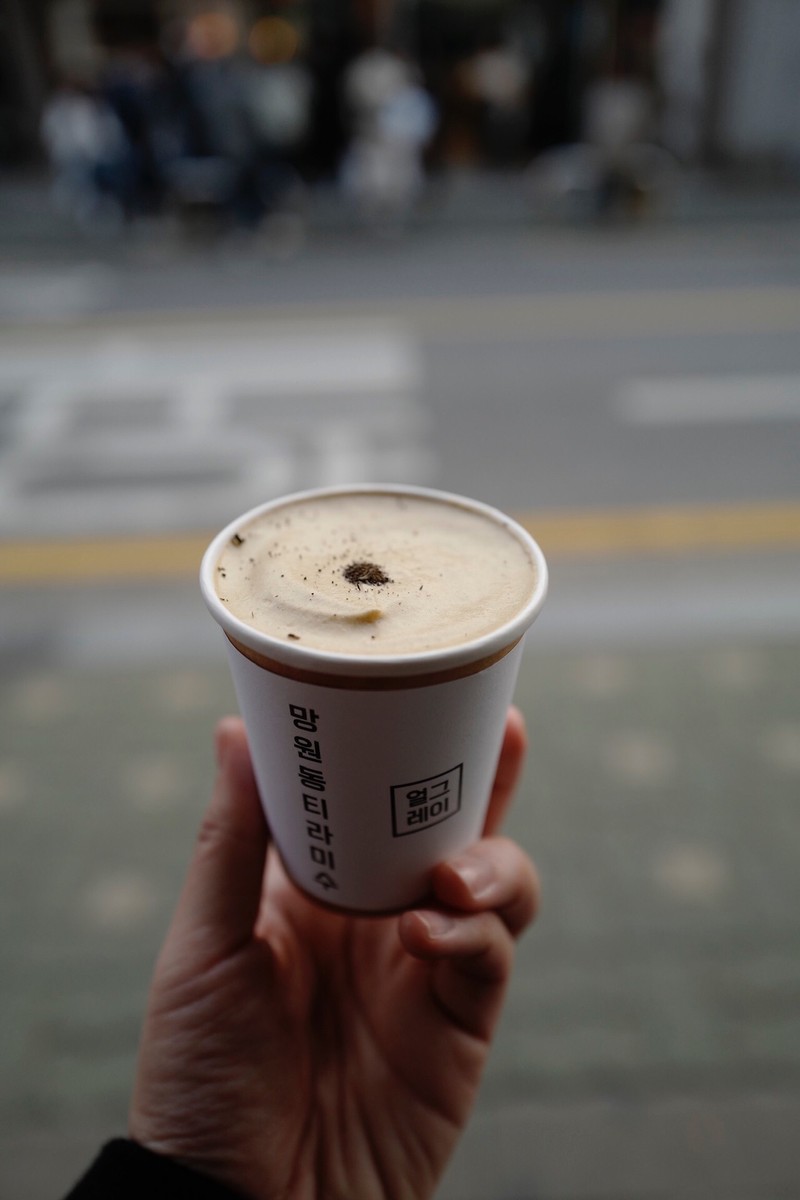 mangwon dong tiramisu 📍 Hongik station exit 3 จากนั้นเดินตรงไปตามสวนสาธารณะ ร้านอยู่ขวามือ ร้านนี้ดังเรื่องเค้กครีมทิรามิสุที่เสิร์ฟในแก้วกระดาษขนาดกระทัดรัดตัวขนมเป็นครีมทิรามิสุ ผสมกับแป้งเค้กนิ่มๆ ราดด้วยแยมสตอเบอรี่บางๆ ทานคู่กันแล้วอร่อยลงตัวดี มีหลายรสให้เลือก เช่น ชอคโกแลต มัทฉะ บลูเบอรี่ ร้านสวยดี ตกแต่งโทนขาวสลับกับลายไม้อ่อนๆ ถ่ายรูปออกมาให้อารมณ์เกาหลีสุดๆดูเพิ่มเติม