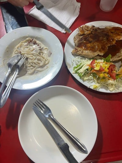 100% ของรีวิวบอกว่าร้านนี้เหมาะกับ เพื่อนฝูงสเต็ก 59 เมืองจันทบุรี ร้านอยู่ริมถนนท่าแฉลบ มีโต๊ะนั่ง 12 โต๊ะ จอดรถได้ข้างทาง ขับรถผ่านเห็นคนเยอะ เลยมาลองกินบ้าง เมนูที่สั่ง 🍟 เฟรนช์ฟรายส์ 39 บาท ชิ้นไม่ใหญ่มาก ไม่อมน้ำมัน 🍝 สปาเก็ตตี้คาโบนาร่า 89 บาท เส้นหนึบ รสชาติดี 🥩 สเต็กหมู+ไก่ 129 บาท 2 อย่างใน 1 จาน ตัวหมูกับไก่ นุ่ม น้ำราดรสชาติโอเค กินคู่กับผัก เฟรนช์ฟรายส์ ที่ให้มาอร่อย #WongnaiWesternSpecialist 🇪🇭 2 สเต๊ก #SteakSpeciali...อ่านต่อ