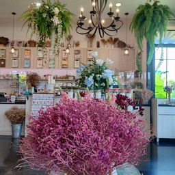 ที่ร้านนี้จะมีกาแฟสด ขนมจะเป็นพวกเบเกอรี่โฮมเมด ร้านจะตั้งอยู่ภายในศูนย์จำหน่ายอาหาร และของฝาก ของโรงงานวุ้นเส้นท่าเรือ ตราสิงห์โต จังหวัดกาญจนบุรี ร้านโครงสีดำ มีกระจก ภายในตกแต่งด้วยดอกไม้แห้งหลากสี มีมุมนั่งหลายๆ มุม น่ารักดีค่ะดูเพิ่มเติม