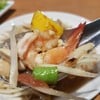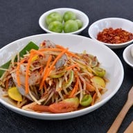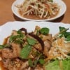 เส้น 345 นี่มีร้านแบบนี้น้อยมากส่วนใหญ่ อยู่ ถ.ชัยพฤกษ์ ถ.ราชพฤกษ์ เลยขอลองหน่อย สั่งมาลอง 3 อย่าง - ยำหมูย่าง (100) มาแล้วลองหมูก่อน นุ่มดี แต่รสหมูยังไม่กลมกล่อมมากนัก รสชาติยำจะหวานนำ แต่โดยรวมถือว่าอร่อยดี มาอีกอย่างคือ - ส้มตำมั่ว (80) เป็นส้มตำปูปลาร้าใส่เส้นหมี่ แคบหมู แต่เราไม่กินปลาร้า ทางร้านเลยทำเป็นส้มตำไทย ใส่แคบหมู เส้นหมี่ มะเขือเปราะ ส่วนรสชาติออกไปแนวตำไทยเลย แต่จะเปรี้ยวนำ ...อ่านต่อ