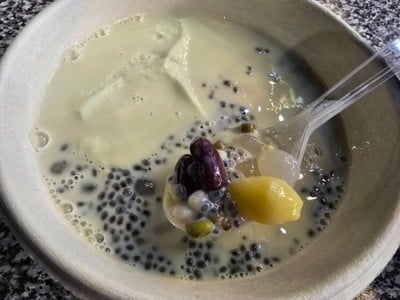 ร้านเต้าหู้ นมสด และทรงเครื่องเปิดใหม่ครับ อยู่แถวๆ หน้า บริเวณสนามฟุตบอลกลางซอยมัยลาภ มีเมนูเยอะมากครับ มายืนดูเมนูอยู่สักพักนึงครับถึงจะสั่งได้ว่าจะกินเมนูไหนดี ทับทิมกรอบน้ำกะทิ - มีความหอมของกะทิ น้ำเต้าหู้ทรงเครื่อง - เครื่องเยอะมากดูเพิ่มเติม
