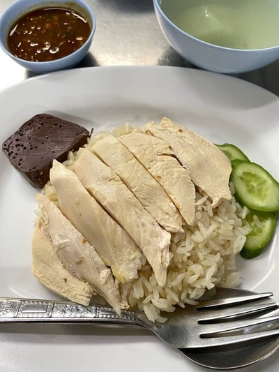 ครั้งนี้ได้แวะผ่านเข้ามาช่วงเวลาเที่ยงพอดี เพื่อนเคยแนะนำว่ารสชาติอร่อยและขึ้นชื่อ ได้มาลองทานแล้ว รสชาติอร่อยครับ เม็ดข้าวสวยงามไม่แฉะ เนื้อไก่มีความฉ่ำ น้ำจิ้มมีกลิ่นขิงนำ ส่วนตัวชอบทานขิงอยู่แล้ว ช่วยแก้เลี่ยนและดับคาวได้ดี น้ำซุปไก่รสชาติดีครับดูเพิ่มเติม