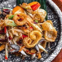 ร้านนี้ เพิ่งเคยมาเป็นร้านที่รุ่นน้องแนะนำ เลยมากินด้วยกันสี่คน เป็นร้านส้มตำริมแม่น้ำตาปี อยู่ฝั่งบางใบไม้ มาไม่ยากขับเลย CBD 2 นิดหน่อยก็ถึง เห็นว่าเป็นร้านในเครือ The ground เครื่องดื่มจะคล้ายๆกัน ในร้านไม่ใหญ่ไม่เล็กมาก มีราว 10-15 โต๊ะ นั่งสบายๆ เปิดเพลงสไตล์ ชิลๆ วันนี้ลองชิม - ตำมะม่วงปูปลาร้า ไม่เหม็น ออกเค็มไปหน่อย รสชาตพอผ่าน - ตำข้าวโพด รสชาตปานกลาง กุ้งแห้งใหญา่หน่อย - คอหมูย่าง สา...อ่านต่อ