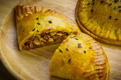 Tender chicken with a blend of herbs and spices and wrapped in housemade carribean style pastry