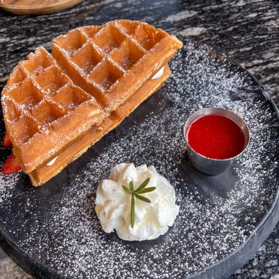 เป็นร้านคาเฟ่ ของหวาน ในดวงใจ รสชาติมาตรฐาน เหมือนเดิมทุกครั้งที่มากิน กินตั้งแต่ตลาดนกฮูกตั้งใหม่ๆ ร้านอยู่เลียบถนนเลี่ยงเมืองนนทบุรี ฝั่งสนามบินน้ำ ร้านมีที่จอดหน้าร้านแต่ไม่มากนัก มีเมนูให้เลือกมากมายหลายแนว ทั้งขนมหวาน อาหารคาว สเต๊ก พิซซ่า ครบทุกแนวจบในที่เดียว มีเบียร์ มีชา สั่งอาหารก่อนแล้วจะได้ป้ายไปตั้งที่โต๊ะแล้วของจะมาเสิร์ฟ **มาวันหยุดเสาร์ อาทิตย์ที่จอดจะเต็ม คนจะเยอะมาก ไม่ค่อยม...อ่านต่อ