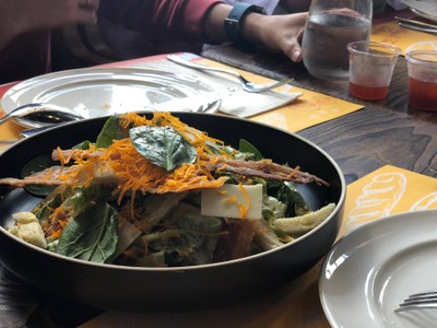 เป็นร้านที่เจ้าของที่พักแนะนำว่าดี ควรมา ซึ่งพอมาจริงก็ดีมากจริงๆ ถึงแม้จะรอคิวแต่เค้า จัดระบบดี รอไม่นาน บรรยากาศในร้านดี โปร่งโล่ง มีดนตรีสด เพราะด้วย มีมุมให้ถ่ายรูปเยอะ พนักงานมีความรู้ในการแนะนำเมนูอาหาร แล้วอาหารคืออร่อยทุกอย่าง(ย้ำว่าอร่อยทุกอย่าง) เป็นอาหารแนวฝรั่ง แล้วก็แนวฟิวชั่น เนื้อคือดีมากนุ่มฉ่ำสุดๆ พอร์คช็อปก็ดี สปาเก็ตตี้ก็หอม ต้มยำก็อร่อย รสจัดจ้าน มันบดคือฟินมากกกกกก สรุปคือ...อ่านต่อ