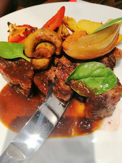 มาเขาใหญ่ ถ้ามื้อไหนเน้นสเต็ก ร้านนี้จะเป็นอีกร้านที่เรานึกถึงค่ะ ที่แน่ๆ มองเห็นด้วยตาคือร้านสวย ขนาดร้านกำลังดี ตกแต่งดีให้ความรุ้สึกอบอุ่น ส่วนตัวชอบเพลงสดมาก เพราะมากค่ะ เสต็กดี ไวน์ดีเช่นกัน อ้อ ขนมก็อร่อยมากนะคะ ใช้วัตถุดิบดี ปรุงอร่อย สมราคา -Welcome Garlic Bread -เนื้อแองกัส PRIME19 ย่างถ่าน -ขนมปังกระเทียม -พิซซ่าแซลมอนรมควัน เหล่านี้คือเมนูที่ชื่นชอบดูเพิ่มเติม