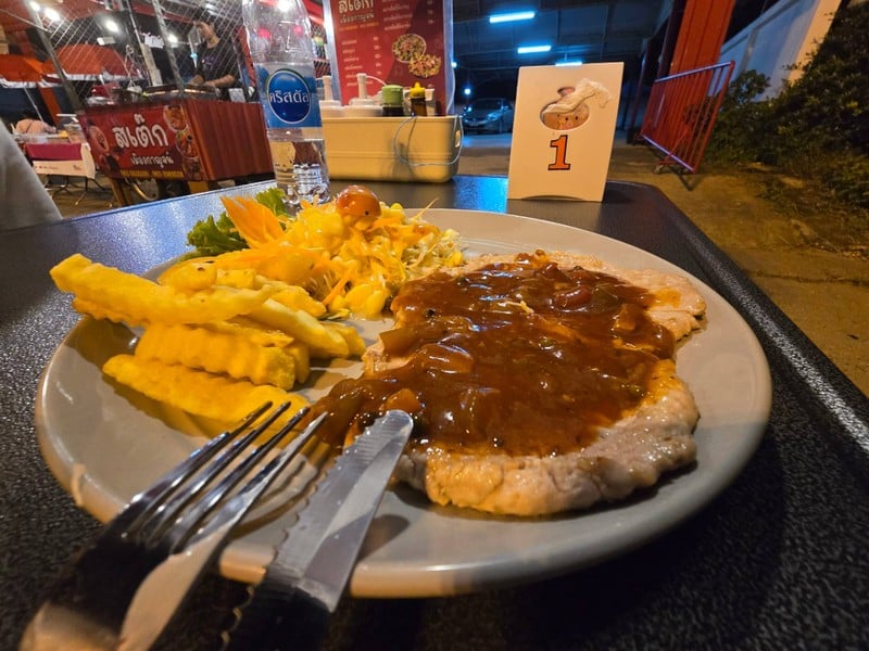 สเต็ก ริม ทาง รส ชาติ ดี หมู นุ่ม หมัก ได้ ที่ ราคา ไม่ เกิน ร้อย