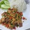 same street with Bangkok hospital. The shop is indoor seats and without air conditioning. Here orders were: stir fried morning glory, stirred fried squid with salty egg sauce & one rice topping with crispy pork chili. Totally amounted THB284 with a bottle of water. A plate of dish can be consumed by single or maximum two persons.ดูเพิ่มเติม