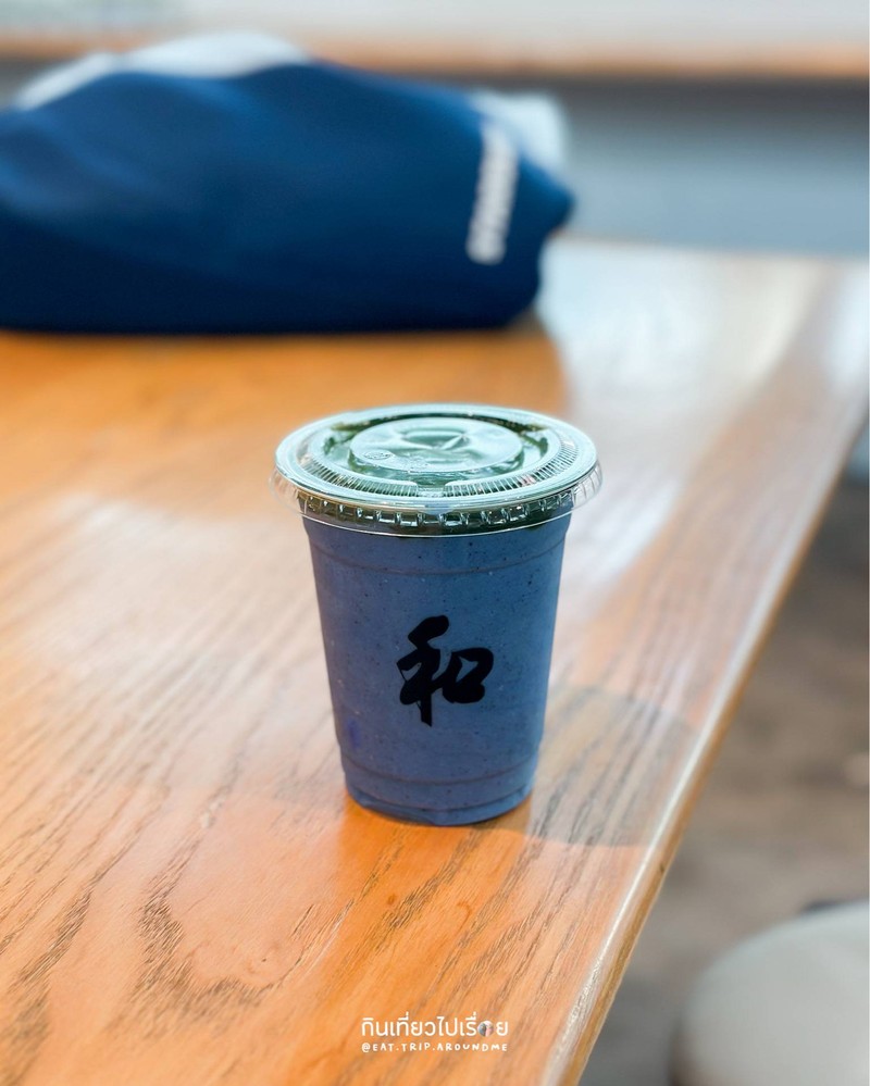 blue spirulina, blueberry, coconut, banana, mango, apple, pineapple (ในรูปเป็นแบบ + add on Matcha)