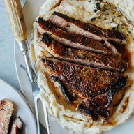 230g AUS Ribeye Beef Steak on mashed potatoes