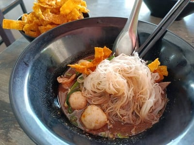อยู่ดีๆก็นึกอยากกินก๋วยเตี๋ยวน้ำตก น้ำข้นๆ เพื่อนเลยพาไปกินที่ร้านนี้ ก๋วยเตี๋ยวเรือโบราณ สาขา2 สั่งเส้นหมี่ขาวแบบธรรมดามาทาน แค่เห็นก็ถูกใจแล้ว น้ำไม่เยอะมาก ขรุกขริก ข้นๆ มีรสความเผ็ดแซ่บปนอยู่ด้วย ไม่ต้องปรุงก็ได้ รสก็ถือว่าอร่อยใช่ได้เลย เข้มข้นดีเลย ทานคู่กับเกี๋ยวทอดก็อร่อย หรือจะทานกับแคบหมูก็ฟินไปเลย ราคาร้านนี้ก็ไม่ได้แพง ธรรมดา 35บาท พิเศษ 40บาท เกี๋ยว 10บาท ร้านตั้งอยู่ในซอยสุรนารา...อ่านต่อ