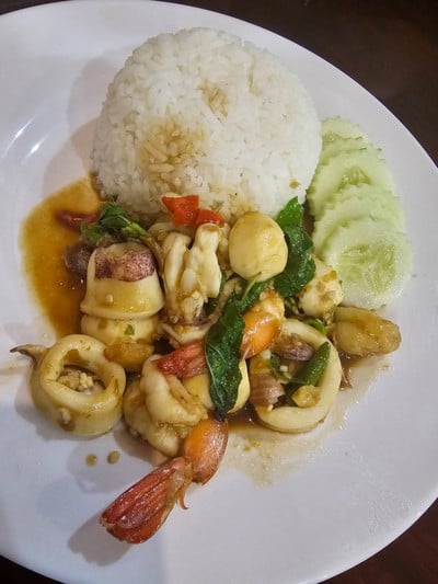 ร้านครัวคลองใหม่ by ปูม้า เส้นคลองใหม่ พานทอง เซเว่นคลองใหม่ เลี้ยวซ้ายเลียบคลองมา 500 ม. ฝั่งตรงข้ามบ้านเอื้ออาทรคลองใหม่ ร้านมีลานจอดรถกว้างขวาง ร้านเป็นห้องแอร์มีโต๊ะ ไม่มาก ประมาน 8-10โต๊ะ เมนูอาหาร หลากหลาย วันนี้สั่งเป็นกระเพาทะเล ราดข้าว รสชาติจัดจ้าน ข้าวนุ่มหอม ฮ้อยจ๋อ ทอดมาร้อนๆ ไส้แน่นๆ กระเพาะปลา รสชาติอร่อย ติดใจ ชามนี้ 160 บาท ไม่แพง เพิ่มซอสเปรี้ยวไปนิด เข้ากันดีมากค่า จบด้วย แก...อ่านต่อ