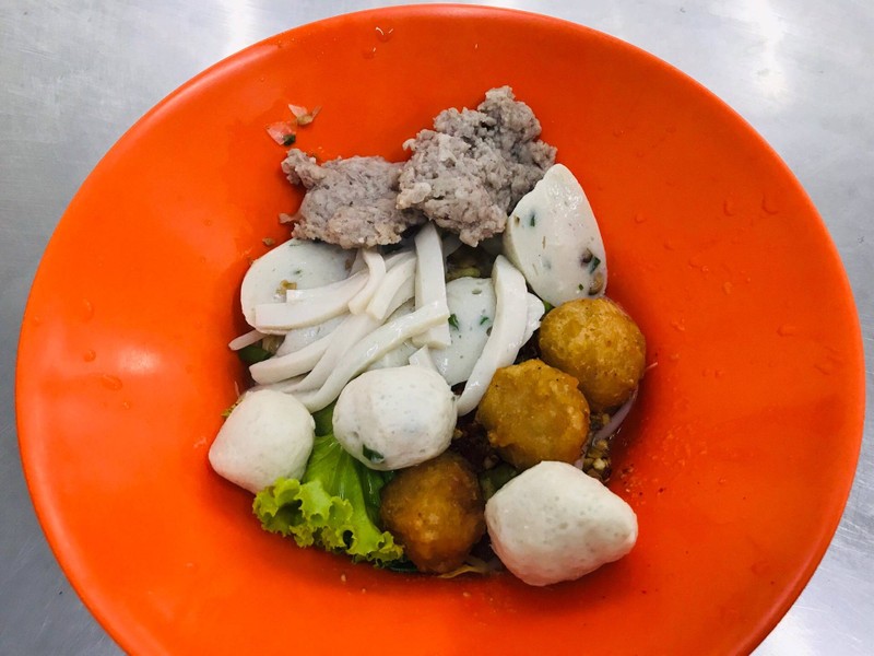 เดินผ่านร้านลูกชิ้นปลาบรรทัดทอง ลองซื้อกลับบ้านมาชิมซะหน่อย โอเคอยู่นะ เย็นตาโฟรสชาติได้อยู่ เรากินเกาเหลาเย็นตาโฟ น้ำซุปโอเค ลูกชิ้นปลาอร่อยดี ให้ปริมาณกำลังเหมาะ แต่เสียดายหนังปลากรอบแอบแข็งๆ กัดไปกลัวฟันแตก และลองสั่งหมูสันในยำเต้าเจี้ยว หมูเนื้อล้วนๆ นึ่มอยู่นะ ก็เค็มๆ เปรี้ยวๆ อร่อยดี โดยรวมให้ผ่าน 3 ดาวดูเพิ่มเติม
