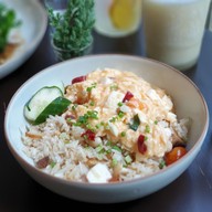 พิกัด หลังวัดพระธาตุหริภุญไชย ถ.เชียงใหม่ลำพูน (แถวพิพิธภัณฑ์ฯลำพูน) ร้านดังของลำพูน ร้านนี้มีแกลลอรี่เล็กๆอยู่ชั้น2 มีมุมถ่ายภาพสวยๆเยอะ ร้านนี้เค้ามีเมนูอาหารแปลกๆมาให้ลองหลายแนวนะ วันนี้เราลอง ข้าวผัดปลาบ้วง ไข่ข้น รสชาติแปลกดี เครื่องดื่ม รสชาติยังไม่ถูกใจจ้ะ กาแฟส่วนใหญ่ออกรสเปรี้ยว เรามาทำงานช่วงคลายล็อคเปิดโควิดใหม่ๆ อาจจะมีหลายอย่างไม่พร้อม ต้องมาลองใหม่แน่ๆคราวหน้าดูเพิ่มเติม