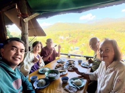 50% ของรีวิวบอกว่าร้านนี้เหมาะกับ คู่รักร้านตั้งอยู่บ้านเก๊าดื่อ เส้นสะเมิงหางดง โดยตัวร้านอยู่ติดริมถนนมีป้ายบอกร้านชัดเจน ที่ร้านมีที่จอดรถหน้าร้านและริมถนน ที่ร้านวิวสวยบอกเห็นวิวภูเขาและหมู่บ้านและโรงเรียนนานาชาติอยู่ด้านแบบชัดเจน ด้านเมนูอาหารที่มาลองชิมครั้งนี้อย่างปลานิลสามรสทำออกมาได้ดีรสชาติโอเค ตำมะม่วงออกเค็มไปนิดแต่ดี แหนมวุ้นเส้นผัดไข่1เมนูที่ผู้สูอายุชอบ กุ้งฝอยทอดทอดออกได้กำลังดี กบทอดกระเทียมเมนูนี้สั่งมา2จานเพราะหมั...อ่านต่อ