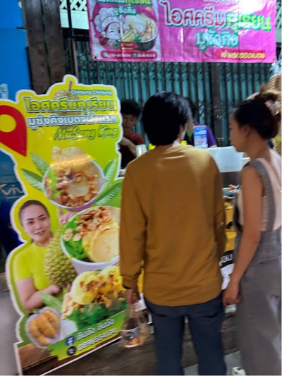 100% ของรีวิวบอกว่าร้านนี้เหมาะกับ เดลิเวอรีรีวิวเก็บตกจากทริปปีใหม่ที่เบตง ไปนอนคืนแรก เวลาว่างค่อนข้างเยอะเลย เลยออกมาเดินเล่นรอบนึงก่อนตอนค่ำๆอีกที เดินจนมั่วแล้วเห็นมีร้านขายไอศกรีมทุเรียนมูซานคิงร้านนี้อยู่ เลยขอหน่อย รู้สึกจะถ้วยละ 30-40 บาทนี่แหละ ก็ไม่ได้แพงเท่าไหร่ เอามาลองดู ไอศกรีมรสชาติออกหวานๆนะ กลิ่นทุเรียนมีชัด ไม่แน่ใจเป็นหัวเชื้อหรือทุเรียนสด แค่ก็แก้ขัด แก้อยากดี อากาศไม่หนาวด้วย ทานไอศกรีมช่วยเอานิดนึงดูเพิ่มเติม