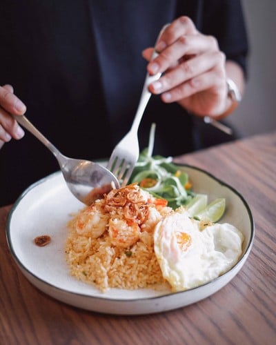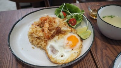 ร้านบรรยากาศดีครับ จริงๆร้านเค้าเน้นเมนูของหวานน แต่ผมไม่ได้กินของหวานเลย... เมนูแรก ข้าวผัดครีมมันกุ้ง ไข่ดาว 145 บาท อันนี้บอกเลยอร่อยครับ แต่สำหรับคนที่ไม่กินเผ็ด อาจจะทรมานหน่อยๆ ข้าวผัดมาได้ดี ไม่แฉะ รสมันกุ้งในข้าวไม่จัดมาก ผัดออกมากลมกล่อม อร่อยดี เมนูที่ 2 ข้าวไก่กรอบเทริยากิ 95 บาท เมนูนี้อร่อยชอบเลยตัวไก่ ทอดมาหนังกรอบหน่อยๆ เนื้อไก่สุกนุ่มๆ กินกับซอสเทริยากิออกเค็มๆหวานๆ ได้ดี ที...อ่านต่อ