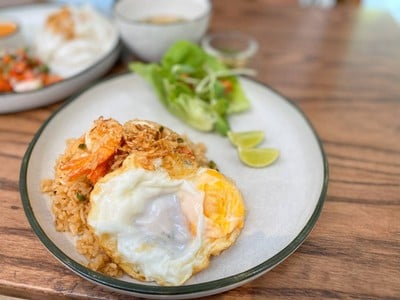 ร้านอยู่ใกล้ม.เทคโนสุวรรณภูมิ ถ้าจะมากินมื้อเที่ยงแนะนำให้มา 11 โมง ไม่ก็บ่ายเลย คนจะไม่ค่อยเยอะ ร้านไม่ใหญ่มาก มีที่จอดรถ แต่ไม่เยอะ ครั้งนี้ที่มาทาน มีข้าวผัดซอสครีมมันกุ้ง สำหรับคนที่ชอบกุ้งได้กุ้งเยอะ แต่ข้าวที่ผัดจะเลี่ยนๆ หน่อย มีพริกสดผัดมากับข้าวด้วย ส่วนเส้นใหญ่อยุธยา กุ้งซัลซา ซอสต้มยำ อร่อยยมากกกก ส่วนตัวชอบเมนูนี้ กุ้งได้หลายตัวเช่นเคย ซอสกลมกล่อม ไม่ต้องปรุงหรือเติมอะไรเพิ่ม ผัดไ...อ่านต่อ