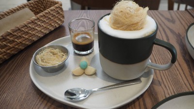 ทุกอย่างเอาสายไหมโปะรัวๆไป! ร้านกาแฟ-ขนมหวานชื่อดังในอยุธยา ขึ้นชื่อเรื่องการเอาสายไหมมาเพิ่มรสหวานของขนมและกาแฟ ร้านเป็น stand alone และเป็นส่วนหนึ่งของโรงแรมชื่อเดียวกัน ร้านสว่างด้วยแสงอาทิต ทาสีขาวสะอาด มีโต๊ะวางห่างๆนั่งไม่แออัด สั่งอาหารได้ที่โต๊ะเลย จอดรถข้างทางฝั่งเดียวกันและฝั่งตรงข้าม มาทุกทีก็มีที่นะ เกือบทุกเมนูใช้สายไหมเพิ่มความหวานทะลุปรอท “บุษบาลาเต้” “Affogato” “บัวลอยอัญชั...อ่านต่อ