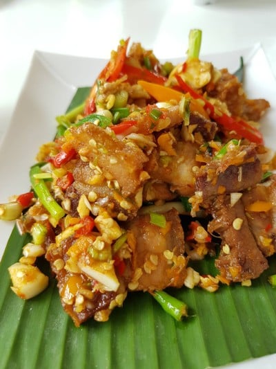 ร้านตั้งอยู่ย่านบางกรวย ในซอยวัดศรีประวัติ มี่ที่จอดรถ :: มาทานร้านนี้ครั้งแรกกับครอบครัว ตามมาจากรีวิว มาทานวันอาทิตย์เวลาประมาณหกโมงครึ่ง คนค่อนข้างเยอะ แต่หาที่จอดรถง่าย ต้องไปจองคิวกับพนักงาน ใช้ชื่อกับเบอร์โทร ระหว่างรอสามารถเดินเล่นในร้านได้เพลินๆ ไม่น่าเบื่อเลย ร้านใหญ่มาก มีหลายโซน มีทั้ง indoor และ outdoor ส่วนใหญ่จะเน้นธรรมชาติ มีบ่อน้ำใหญ่ ร้านแต่งสวย ร่มรื่น สบาย แต่ยุงจะเยอะนิดน...อ่านต่อ