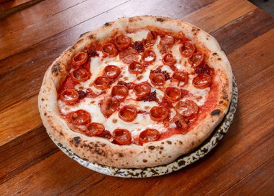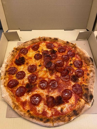 Mozzarella cheese, tomato sauce, spicy salami, nduya (spicy) blended salamy.