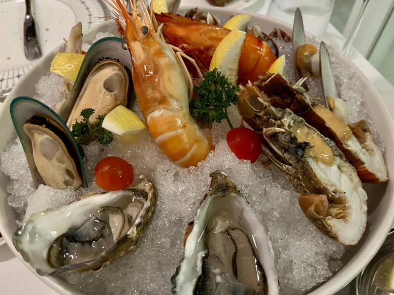 Appertizer: Seafood Plater เสริฟพร้อมกับ Seafood platter dressing เป็น Appetizer ที่ดีครับ อาหารทะเลสดๆมาก เนื้อเด้งมาเลย ที่ง กุ้ง , กั้ง, หอยแมลงภู่ , หอยเชลล์ Seafood platter dressing มีทั้ง ทาท่า น้ำจิ้มซีฟู้ด และ tabassco จานนี้เด็ดครับ แนะนำเลย ส่วน Salad modern ผัดสด น้ำสลัดดี ทานแล้วสดชื่นครับ Maincourse: Tenderloin medium rare ที่ย่างมาดีมาก เนื้อนุ่ม ด้านในยังสีชมพูอยู่เลย ด...อ่านต่อ