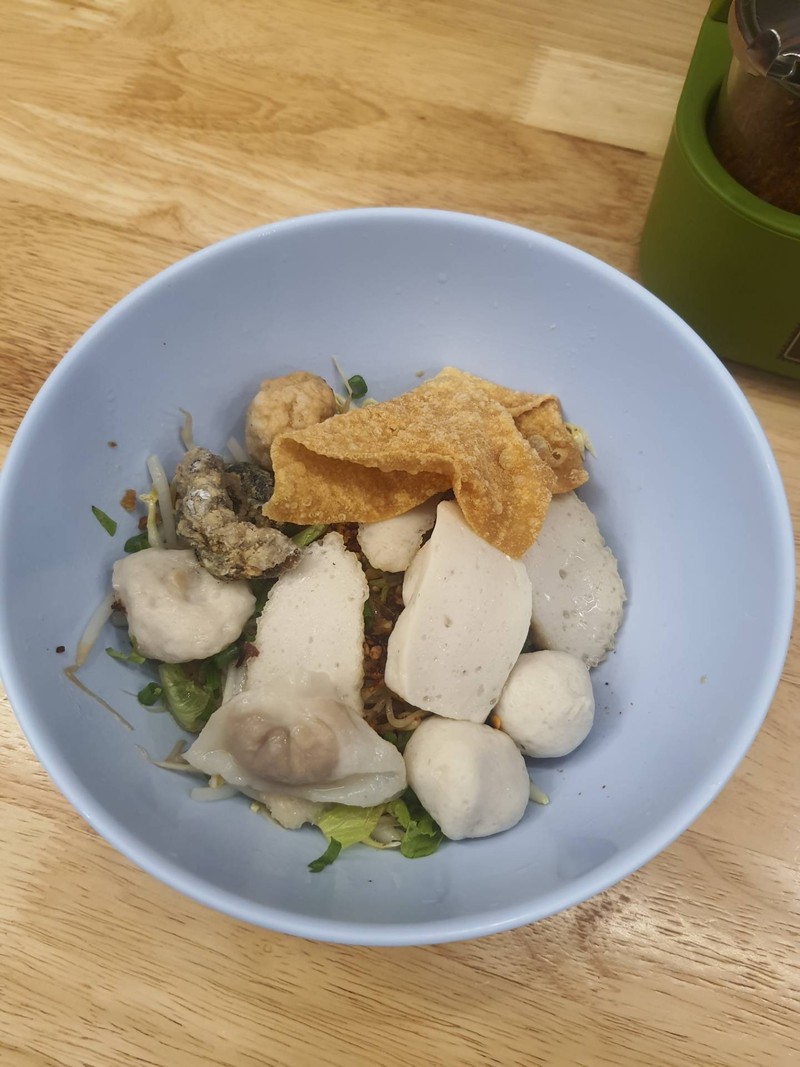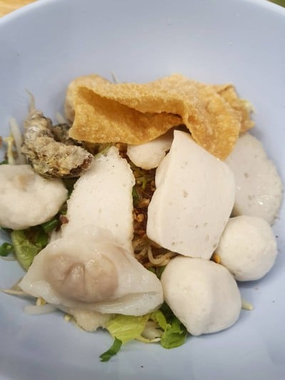100% ของรีวิวบอกว่าร้านนี้เหมาะกับ เพื่อนฝูงกลับจากต่างจังหวัดมาถึงค่ำแล้ว เลยหาก๋วยเตี๋ยวกินที่ร้านในปั๊ม น่าจะเร็วและสะดวกสุด สั่งบะหมี่แห้ง ธรรมดา 65 บาท ที่ร้านนี้ถ้าสั่งแห้ง เขาจะปรุงเป็นต้มยำให้ทุกชาม อร่อยแบบไม่ต้องปรุงเพิ่มเลย บะหมี่เส้นเล็กเหนียวหนึบดี ลูกชิ้นปลา ฮื่อก้วย เกี๊ยวปลา อร่อยทุกอย่างหนังปลากรอบเกี๊ยวกรอบก็ดี แต่ไม่เห็นมีลูกชิ้นกุ้ง น่าจะหมดเพราะเรามาถึงร้านใกล้ปิดแล้ว เรียกว่าเป็นลูกค้ารายสุดท้ายเลยล่ะ😂 #WhoscallxW...อ่านต่อ