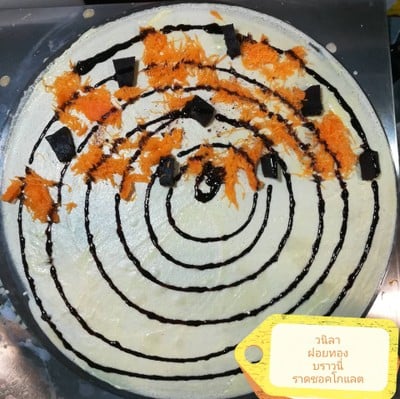 เครปร้านนี้อร่อยมาก เพราะตัวแป้งเค้าทำดีมากๆ มีหลายแบบให้เลือก ทั้งแป้งธรรมดา แป้งใบเตย แป้งชาโคล (แค่แป้งก็อร่อยแล้ว ทานเท่าไรก็ไม่เบื่อ) ทางร้านใช้ท็อปปิ้งจากวัตถุดิบที่ดี ร้านนี้เปิดบ่ายถึงมืด เจ้าของร้านจะบรรจงทำทีละแผ่น ขอให้ทำใจเรื่องการรอหน่อยน๊าาดูเพิ่มเติม