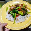 ** คะน้าหมูกรอบราดข้าว จานละ 65.- บาท