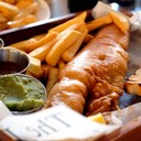 2. Fish and Chip อาหารสัญชาติอังกฤษ ปลาชุบแป้งทอดมาเหลืองสวย เสริฟพร้อมมันทอด ทานแล้วรสชาติใช้ได้