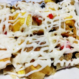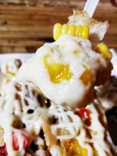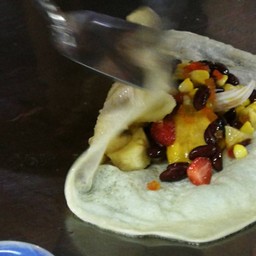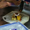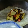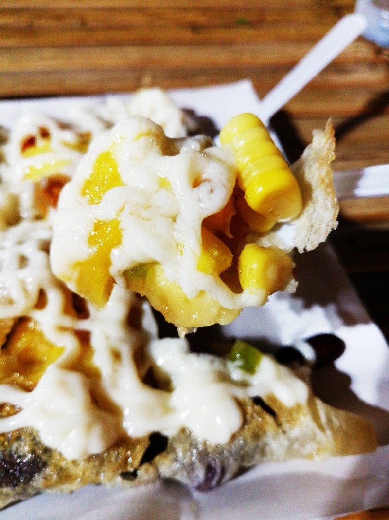 มาเดินเล่นหาของกินที่กาดมณี หลังจากเสร็จอาหารคาวเราก็มาชิมอาหารหวาน เจอร้านโรตี มองเมนูมีทั้งแบบดั้งเดิมและรสชาติใหม่ เราสนใจเลยสั่งมาลองชิม โรตีผลไม้รวม 40 บาท จัดผลไม้มาให้เยอะมาก ทั้งสัปปะรด กล้วย สตรอเบอร์รี่ ขนุน มะพร้าว ข้าวโพด เมื่อทอดเสร็จทางร้านจะสับเป็นชิ้นให้ โรยมายองเนสและน้ำตาล รสชาติหวานผลไม้ดี ตัดด้วยความเปรี้ยวของมายองเนส คล้ายกับกินสลัดผลไม้ที่ใส่แป้งโรตีดูเพิ่มเติม