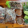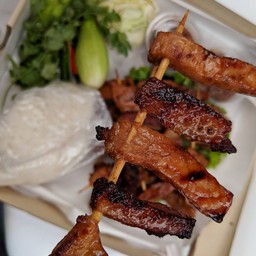 ร้านตั้งอยู่เลียบถนนชายหาดบางแสนค่ะ ไม่มีที่นั่ง ซื้อแล้วไปหาที่นั่งทานเอาเอง แล้วนำกระจาดกลับมาคืนทางร้านด้วย มีทั้งหมูย่าง ไส้ย่าง ไก่ย่าง บลาๆ ผักหยิบหั่นตามชอบ น้ำจิ้มไม่ได้มีแต่ปลาร้านะจ๊ะ น้ำจิ้มแจ่ว อื่นๆก็มีเด้อดูเพิ่มเติม