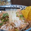 ร้านก๋วยเตี๋ยวเปิดใหม่ บรรยากาศอยอุ่นดูสบายตา มีสวนสวยหลังร้าน ที่จอดรถกว้างขวาง โดยร้านนี้มีเมนูหลักๆเป็นก๋วยเตี๋ยว และมีเมนูข้าวเสริม พวกข้าวหมูตุ๋น ข้าวแห้ง และเมนูกะเพรา จากที่ลองทาน เมนูต้มยำ เส้นเล็กมีความเหนียว และนุ่มเป็นรุ่นเส้นเหนียว ยำไม่มีเครื่องใน ถั่วใส่เยอะ ยำน่าจะเป็นมะนาวเทียม มีความเปรี้ยวแหลมกลิ่นมะนาวแบบมะนาวหอมๆ แต่ส่วนตัวคิดว่าน่าจะใส่เยอะไปนิด ความเผ็ดกลางๆ ใครไม่ทานเผ็...อ่านต่อ