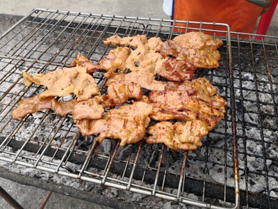 ร้านนี้เน้นขายคอหมูย่าง เป็นเพียงรถเข็นเล็กๆ แต่รสชาดไม่เล็กเลยขอบอก ร้านตั้งอยู่ถนนทุ่งใหญ่ ริมถนนตรงข้ามซอย 1 หมู่บ้านเมืองใหม่ ขายคอหมูย่าง ป้าต่ายเจ้าของร้านเป็นคนเหนือ เอาคอหมูย่างที่เป็นสูตรเฉพาะของครอบครัว มีลูกค้าประจำเยอะมาก ต้องยืนรอนิดนึง ถ้าวันไหนไม่มีลูกค้ารอก็โชคดีไป ที่ร้านมีขายบ๊ะจ่าง ข้าวต้มสามเหลี่ยมและขนมเทียนด้วย แต่มีไม่เยอะ ส่วนคอหมูย่าง ป้าบอกว่ามีจำก...อ่านต่อ