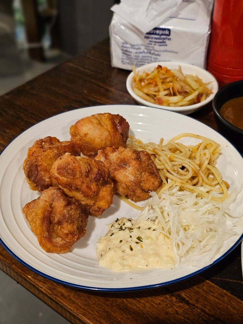 50% ของรีวิวบอกว่าร้านนี้เหมาะกับ จานด่วนร้านไก่ทอดคาราเกะเจ้าดัง เดินจากBTSศาลาแดงมาร้านประมาณ 8 นาที เข้าซอยสีลม6 จะมาโผล่ที่ซอยทานตะวัน เปิดแมพมาได้เลย ร้านมีให้บริการ 2 ชั้น เปิด 2 รอบ 11:00-14:00 และ 17:00-20:00 น. มากันหลายคน และกินจุ แนะนำให้โทรจองนะครับ ทางร้านจะได้เตรียมไก่ไว้ให้ ทอดสดใหม่ ร้อนๆจากเตา ไก่ทอดคาราเกะ ทอดมาหนังกรอบ เนื้อนุ่มฉ่ำ กลิ่นหอม รสเค็มกำลังดี สปาเกตตี้ เมนูที่ดูธรรมดาๆ แต่อร่อยมาก รสกลมกล่อม สลัดม...อ่านต่อ