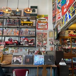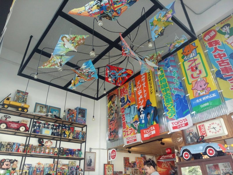 咖啡厅收藏上千种老板淘来的玩具,疫情之前老板经常飞日本老式玩具,可以在这里找到大部分喜欢的收藏,目前因为疫情原因,店铺只开放参观,不接受购买. 店铺非常酷,每个角落都有意想不到的发现,在这里可以找到一整套的奥特曼、原版漫画📖、游戏动漫玩偶🧸、黑胶唱片🎵、投币游戏机🪙、卡带游戏机🎮、光碟游戏机💿. 在这里你不会觉得无聊,可以跟朋友打卡带游戏、拍照、玩纸牌🃏、各种益智游戏. 🥛Astroboy Figthing 太空战士:65泰铢 🍋Ice lemon tea 冰柠檬茶:60泰铢 这两款都很不错,价格便宜,没有限制参观时间,店员非常友善,可以拜托店员更换游戏机的卡带,店里面还有一只招财猫🐈“kiki”,可爱又迷人的反派角色! 如果喜欢动漫玩具,请不要错过这里,是一家非常值得打卡的店铺.ดูเพิ่มเติม