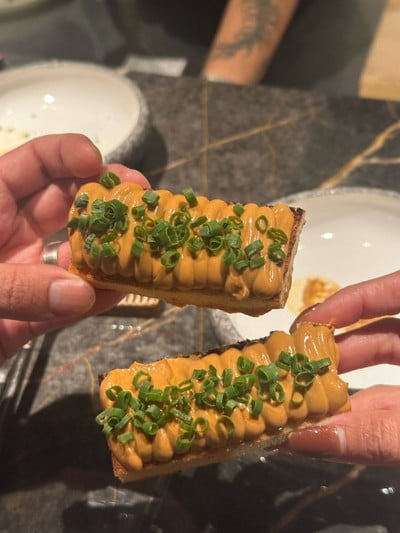 100% ของรีวิวบอกว่าร้านนี้เหมาะกับ ปาร์ตี้ เที่ยวร้านที่เราเลือกเป็นที่ฉลองมื้อพิเศษของสามีเราเอง Fuego ได้ Michelin guideปีนี้ 2025 มาสดๆหมาดๆ อาหารจะเป็นแนว fusion tapas เก๋ๆ เค้าจะมีให้เลือกเป็นคอร์สกับ A la carte เราจบที่ A la carte เพราะชอบเลือกเมนูเอง เมนูที่เราสั่งมาตามนี้เลย - Ensaladilla - Ankimo Toast - Uni Tostada - Padron peppers - Squid ink paella - Tako Yaki - Presa Iberico - Tuna Tataki with Mojo Verde - Hamaguri Udon - Truff...อ่านต่อ