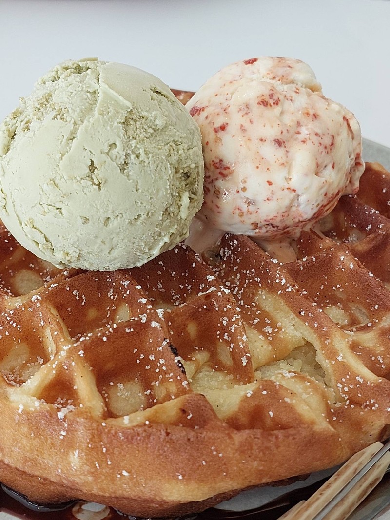 100% ของรีวิวบอกว่าร้านนี้เหมาะกับ เพื่อนฝูงมาเที่ยวสิงคโปร์ ร้านนี้เป็นร้านที่ถูกแนะนำในเวป มีจัด set โปรโมชั่น 13 $ ราวๆ 300 กว่าบาท ให้เลือกระหว่างบราวนี่ กับ วาฟเฟิล เลือกอะไรดี เลือกวาฟเฟิล ขอชิมรสไอติมก่อนได้ ชิมนั่นนี่ เค็มทั้งนั้น Set นี้ 13$ วาฟเฟิล+ไอติม + เครื่องดื่ม เลือกรสไอติม เป็น พิชทาชิโอ้ เค้าว่าเป็นรสชาติ premium เพิ่ม 1$ เพิ่มไอติมอีกลูก เพิ่มเงิน เท่าไรก็ลืมละ ไม่ได้บิลมา เครื่องดื่ม สั่งเป็น มัทฉะลาเต้ เ...อ่านต่อ