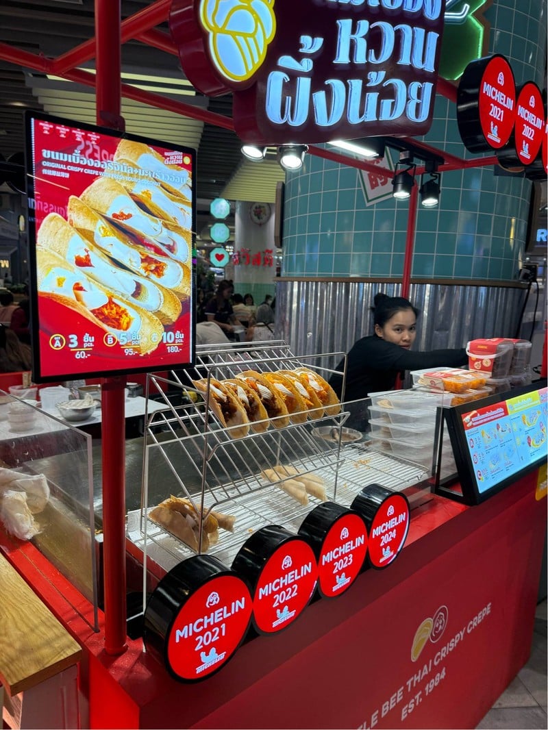 #LINEMANWongnaiUsersChoice2025 ขนมเบื้องหวานผึ้งน้อย การันตีด้วยรางวัล Michelin bib Gourmand 2021-2024 อันนี้เป็นสาขาพารากอน อยู่ตรงโซนอาหารข้างล่าง มีไส้หวาน ไส้เค็ม มะพร้าวอ่อน มีทั้งแบบทำสำเร็จ และ diy ไปทำต่อเอง อร่อยดี บางกรอบ ไส้เยอะไม่หวานไปดูเพิ่มเติม