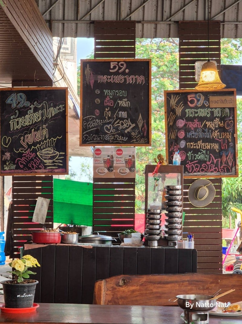 100% ของรีวิวบอกว่าร้านนี้เหมาะกับ จานด่วนเห็นป้ายร้านแดงๆ แต่ไกล แวะเลย กระเพราะถาด เตี๋ยวไก่มะระบุฟเฟต์ ถนนหลักขาขึ้นเหนือช่วงก่อนเข้าสิงห์บุรี สั่งกระเพราะหมูสับไข่ดาว ราคา 59 บาท มาลอง จัดมาน่าทานเต็มจานใหญ่ คลุกทานกันเลย กระเพราะหมูถ้าทานเปล่าๆ รสชาติเข้มข้นเกินออกเค็ม น่าจะใส่น้ำมันหอยเยอะ มีมันออกมามากเกินไม่ได้ผัดแห้งๆ รสชาติพริก กระเทียมครบรส ใบกระเพราะหอมน้อยไปหน่อย โดยรวม โอเครนะครับ 59 บาท ที่ร้านยังมีข้าวมันไก่ ก๋วยเตี๋ยว...อ่านต่อ