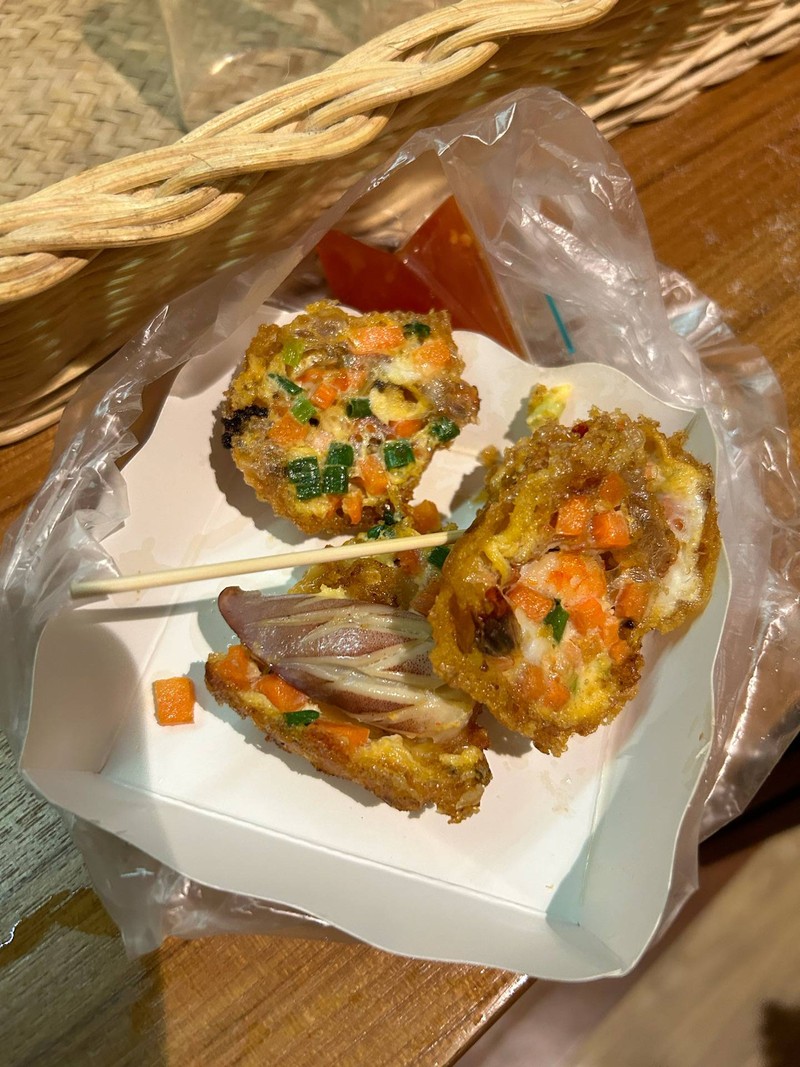100% ของรีวิวบอกว่าร้านนี้เหมาะกับ เดลิเวอรีครกทะเลกระทะเดือด ในตลาดวัดใหม่สำราญ ท่าหน้าบ้าน บนเกาะล้าน จังหวัดชลบุรี ที่ร้านเป็นเมนูครกทะเล รสชาติคล้ายๆหอยทอดแต่ทอดในเตาขนมครก มีเมนู ปูอัด ปลาหมึก กุ้ง หอยแมลงภู่ ราคา 8 ชิ้น 70 บาท สามารถคละรสชาติได้ รสชาติกรอบ อร่อย บางชิ้นร้อน บางชิ้นไม่ร้อน น่าเสียดายไม่งั้นน่าจะรสชาติดีกว่าเดิม ปลาหมึกใหญ่เต็มคำ กุ้งชิ้นเล็กพอดีคำ หอมกลิ่นกุ้ง #Wongnai2025ดูเพิ่มเติม