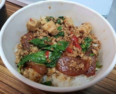 Bangkok lockdown day 01 ยังคงคอนเซ็ปท์สั่งมากินที่บ้าน ในช่วงโควิดปิดกรุงเทพครับ วันนี้ก็ยังอยากกินกะเพราอยู่ดี หมุนไปหมุนมาเจอร้านนี้ ลองซักหน่อย “ข้าวผัดกะเพราคลุกข้าวหมู” เพิ่มไข่ดาวกรอบ ไข่แดงไม่สุก ตัวกะเพราเน้นรสเผ็ดมากกว่ารสอื่น ผัดได้แห้งกริบดี ไข่ดาวดีงาม เพิ่มรสชาติ เหมาะกับคนชอบกะเพราแห้งๆ เผ็ดๆครับ :)ดูเพิ่มเติม