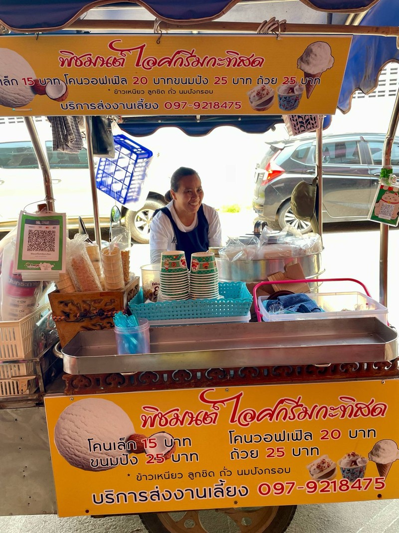 หลังจากเสร็จสิ้นภัตตกิจ ณ ร้านก๋วยเตี๋ยวลุงสงค์ จึ่งบทจรรี่ตรงไปยังหน้าร้าน ด้วยมีรถขายไอศครีมกะทิสดของร้านนี้จอดคอยอยู่ ไอศครีมกะทิสดของร้านนี้มีคุณความดีคือเนื้อเนียนละเอียด ถึงกะทิถึงน้ำตาล เปนเครื่องหวานเมืองน่านอีกร้านที่ชวนให้จึ้งใจ เมนูนั้นไซร้มีหลายหลากให้เลือกรัปทาน อาทิ ไอศครีมใส่ขนมปัง ไอศครีมถ้วยแลไอศครีมโคน ท๊อปปิ้งนั้นมีมากมาย คือข้าวเหนียว ลูกชิด ขนมปัง ถั่วลิสงคั่วแลนมสด เปนต้น...อ่านต่อ