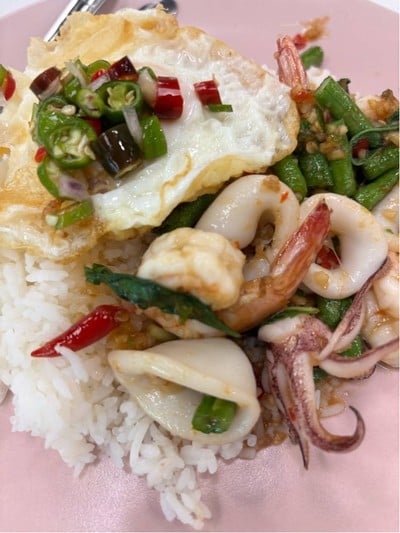100% ของรีวิวบอกว่าร้านนี้เหมาะกับ ประหยัด!คุณมลอาหารอีสาน อปร. แต่มีอาหารตามสั่ง แบบอาหารจานเดียวด้วย เลยลอง สั่ง ข้าวกระเพราทะเล ไข่ดาว 60฿กุ้งตัวเล็ก 3 ตัว ปลาหมึก เป็นกระเพราที่ใส่ใบกระเพราน้อย ใส่ถั่วฝักยาว ผัดแบบมีน้ำขลุกขลิก รสชาติเผ็ดน้อยๆ สาดพริกในโถน้ำปลาพริก มาอีก 2 กรุบ ก็ยังไม่เผ็ดเท่าไร ข้าวเป็นข้าวเสาไห้ ไม่อร่อยเท่าไร ให้ปริมาณข้าวเยอะ กินเหลือ 1/3 จาน #WongnaiSongkran2025ดูเพิ่มเติม