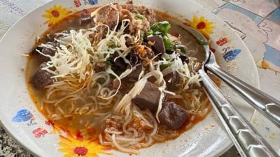 ปั่นจักรยานออกกำลังกายผ่านบ่อยๆ จะแวะกินก็คงไม่สะดวกจนวันนี้มีโอกาสได้เอามอเตอร์ไซค์มาเลยขอแวะชิมสักหน่อย น้ำเงี้ยวหม้อใหญ่ตั้งอยู่บนเตาไฟอุ่นร้อนตลอดเวลา เป็นร้านบ้านบ้านแต่สะอาดสะอาดใช้ได้ มีผักเคียงทั้งถั่วงอกและกะหล่ำปลีซอย ครอบไว้ด้วยฝาชีกันแมลง พร้อมพริกแห้งคั่วสำหรับคนชอบเผ็ด มีน้ำดื่มฟรีไว้บริการ คุณป้าเจ้าของร้านอัธยาศัยดีดูเป็นคนใจดี คุณป้ายังถามด้วยว่าเอากระดูกหรือไม่ น้ำเงี้ยว...อ่านต่อ