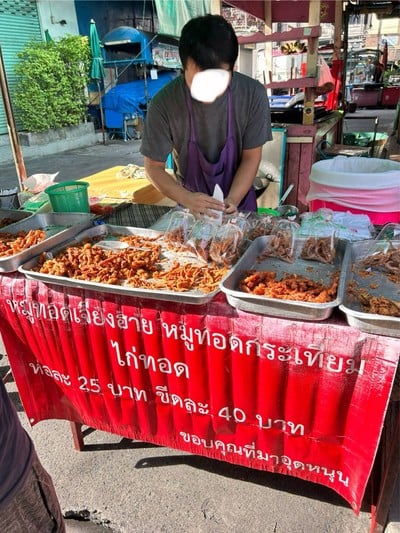 ร้านหมูทอดเจียงฮายตั้งอยู่ในซอยวัดไผ่ตัน หน้าร้านขายของชำ สามารถเดินทางมาได้โดยบีทีเอสสถานีสะพานควาย เมนูที่ร้านมี หมูทอดเจียงฮาย หมูทอดกระเทียม หมูสามชั้นทอด เอ็นข้อไก่ทอด ไก่ทอด และข้าวเหนียว ห่อละ 25 บาท ขีดละ 40 บาท วันนี้ซื้อ หมูเจียงฮายถุงละ 20 บาท รสชาติดี ไม่อมน้ำมัน กรอบ อร่อย ทานเพลิน #WongnaiSongkran2025ดูเพิ่มเติม